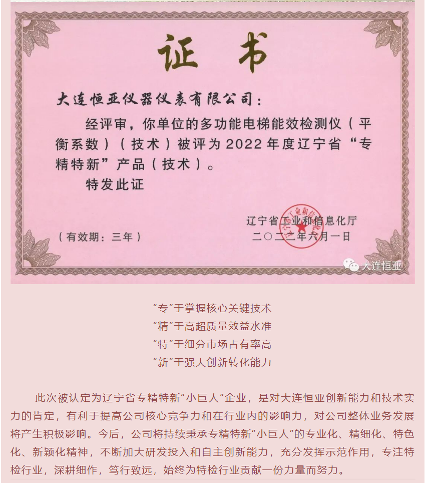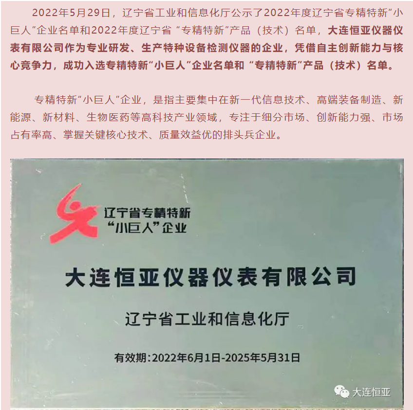 大連恒亞榮獲“遼寧省專精特新小巨人企業(yè)”認(rèn)定