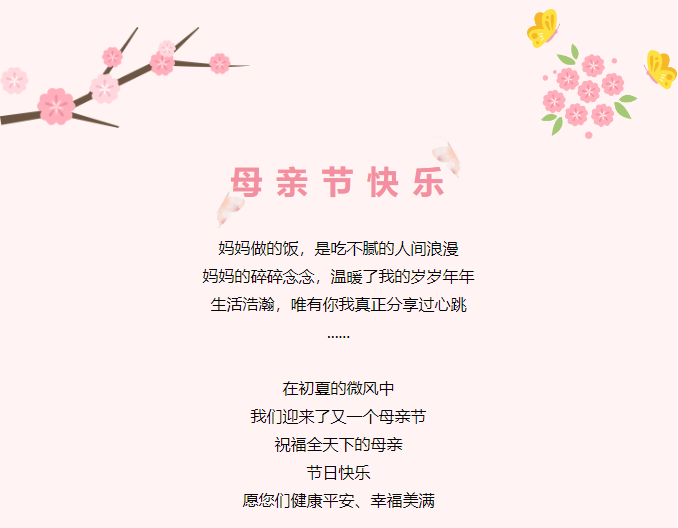 陽光燦爛,暖風拂面 今天是被愛和感恩包圍的一天 母親節(jié)只有五月中的一天而母親的愛卻是歲歲年年 祝天下所有的母親節(jié)日快樂 幸福安康~
